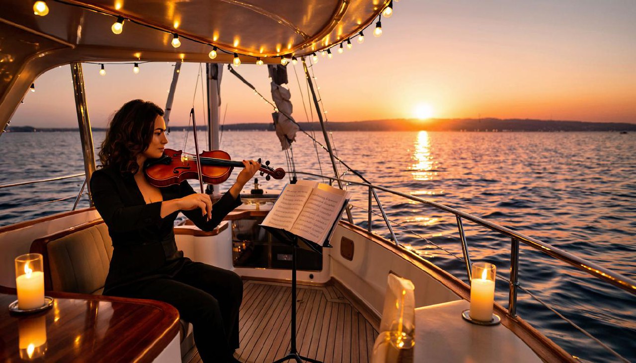 Прогулка на катере с живой скрипкой — вечерняя вода, свечи и музыка.